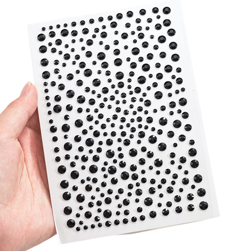 Cada piedra está hecha de material acrílico de calidad, que refleja la luz maravillosamente y emite un brillo deslumbrante. Gracias a la capa adhesiva, la aplicación es rápida y sencilla, sin necesidad de pegamento adicional. Las piedras se mantienen firmemente durante todo el evento y no dejan residuos al ser retiradas. Si se manejan con cuidado, se pueden reutilizar varias veces.