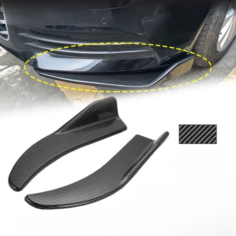Spoilers frontales negros universales de material ABS que mejoran la protección del parachoques delantero, mejoran la apariencia del vehículo y se montan fácilmente con los tornillos incluidos. Descripción completa