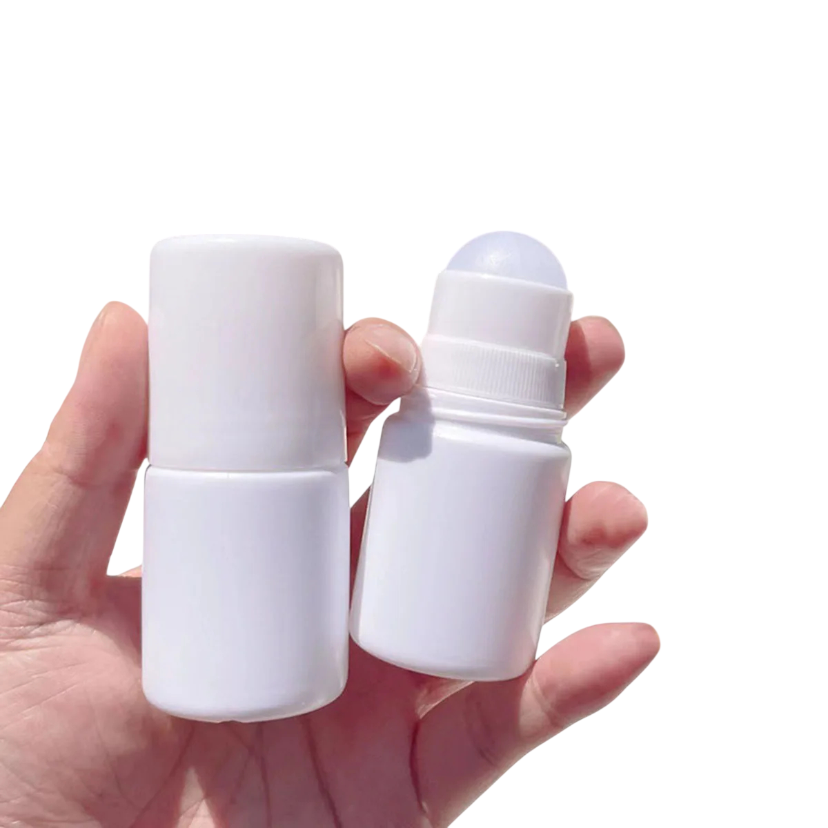 2 unidades de frasco roll-on de plástico con bola blanca reutilizable para desodorante, cosméticos líquidos y uso de viaje