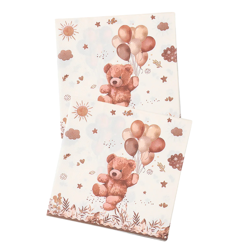 El paquete contiene 20 unidades de servilletas de papel, por lo que son ideales para celebraciones pequeñas y grandes. El diseño de osito con globos también complementará perfectamente otras decoraciones de fiesta, como globos, platos, vasos o guirnaldas.