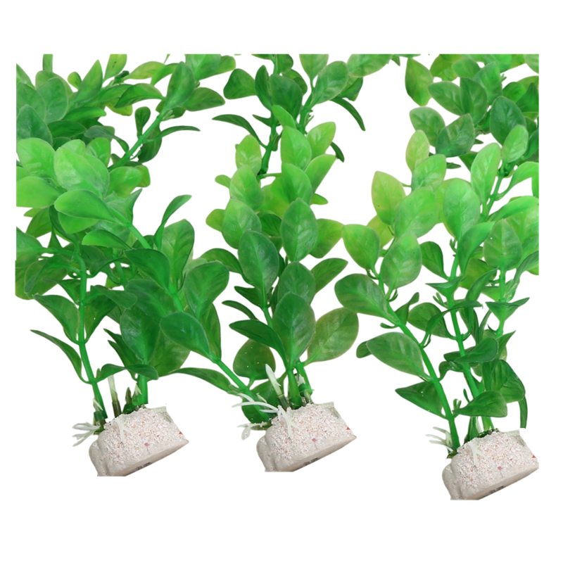 Set de 3 plantas de plástico de 26 cm de altura para la decoración del acuario, material no tóxico seguro para peces, sin afectar la calidad del agua. Descripción completa
