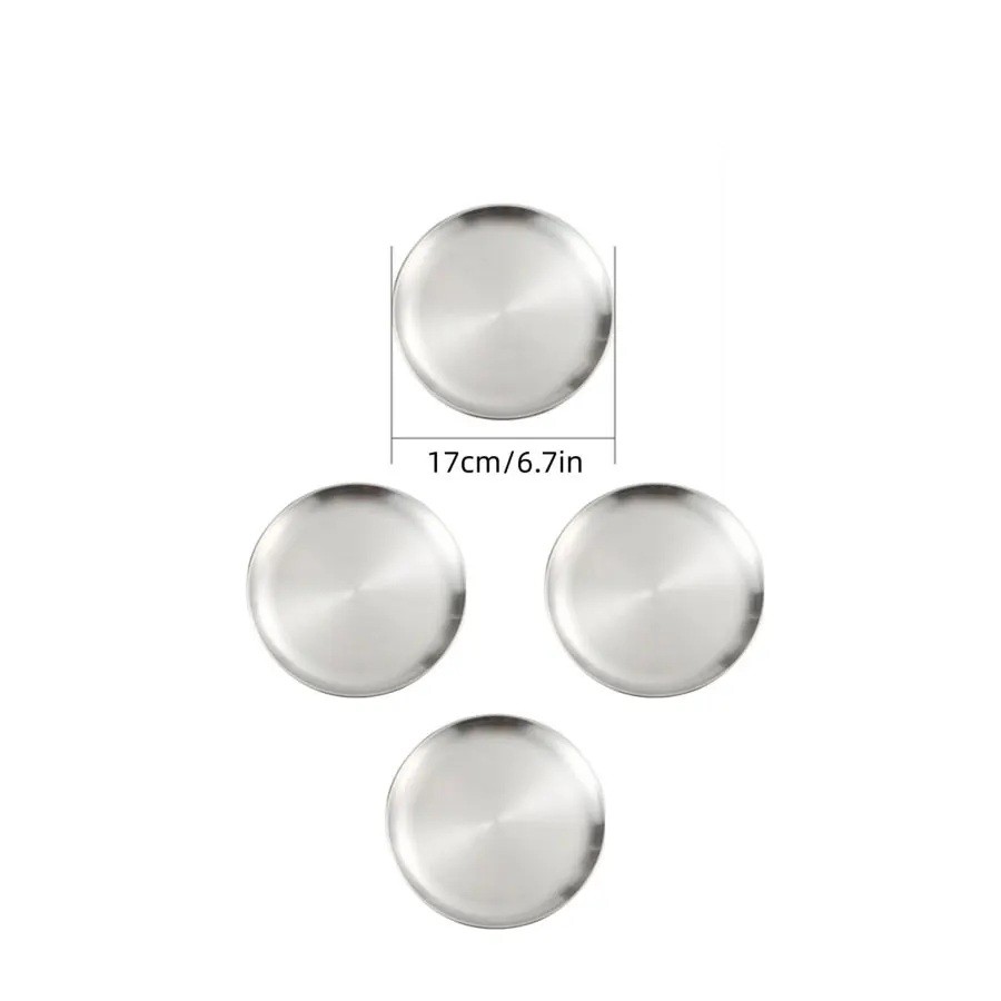 Página de inicio Página de inicio Casa y enseres domésticos Cocina Accesorios de mesa Platos 4 piezas de platos de acero inoxidable de 17 cm Platos de cocina plateados para postres, aperitivos, servicio y uso diario