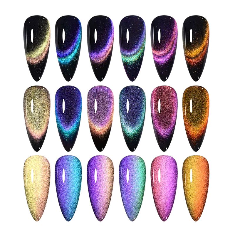 Este set premium de esmaltes de gel magnéticos está diseñado para una decoración de uñas llamativa y visualmente impactante con efecto ojo de gato. Contiene 8 botellas de 7 ml, que permiten crear efectos magnéticos 9D únicos con gran profundidad y brillo. Los esmaltes son aptos para curar en lámparas UV y LED y ofrecen una duración prolongada de 2–3 semanas sin pérdida de intensidad. La composición es amigable, ecológica y libre de sustancias químicas irritantes, lo que es apreciado tanto por salones profesionales como por usuarios domésticos. El resultado son uñas fantásticamente brillantes con un aspecto profesional.