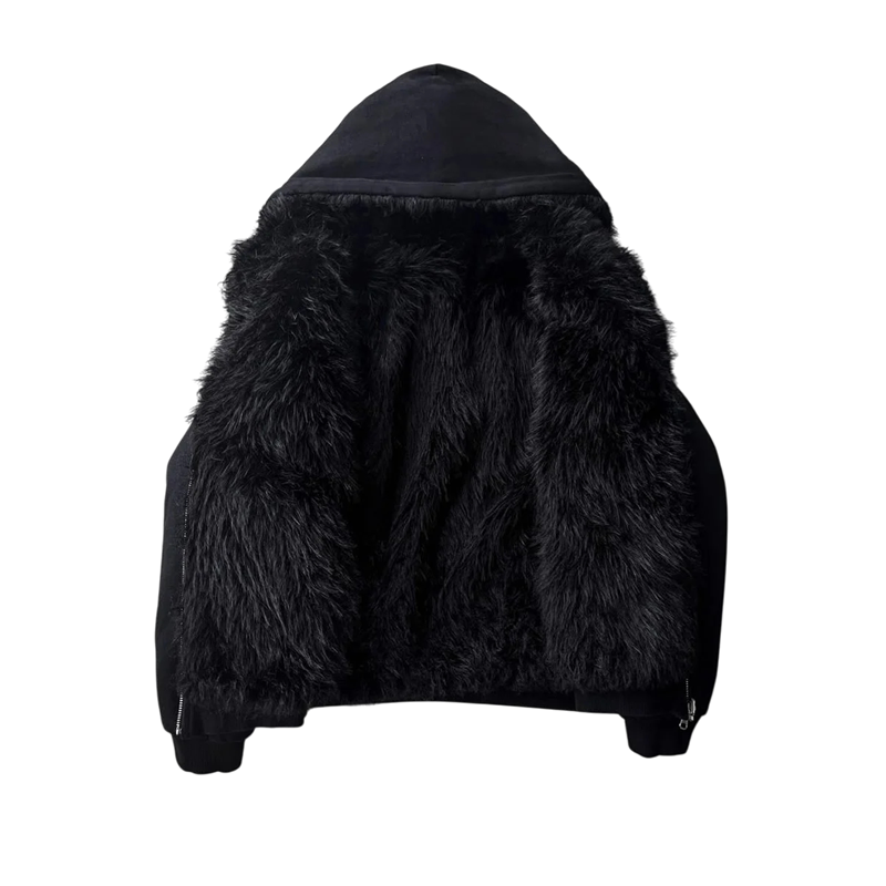 Abrigo de invierno para hombre de piel sintética negra Resistente al viento Cierre de cremallera Poliéster resistente Abrigo cálido para épocas frías