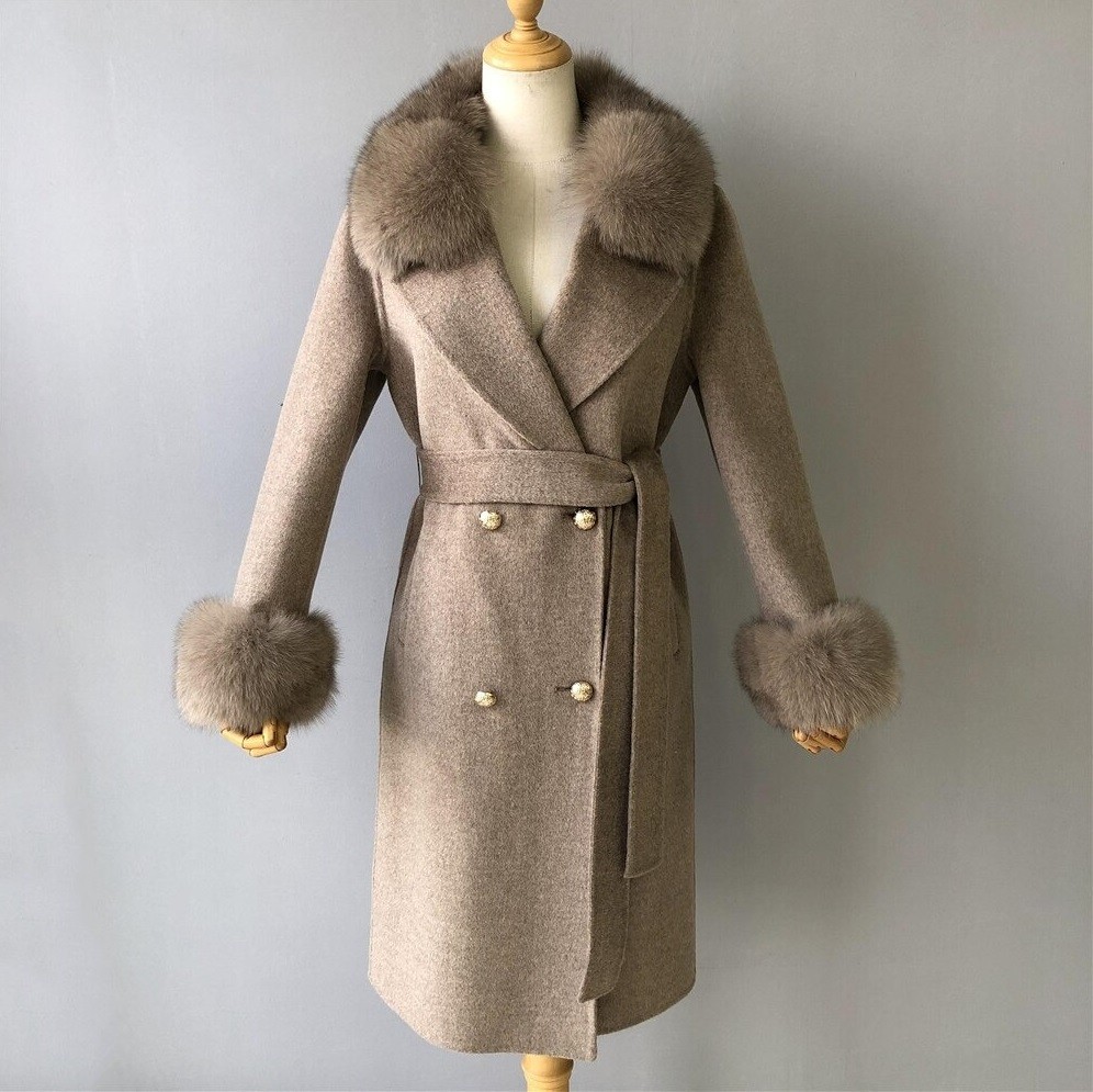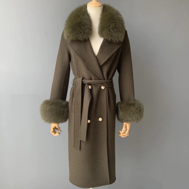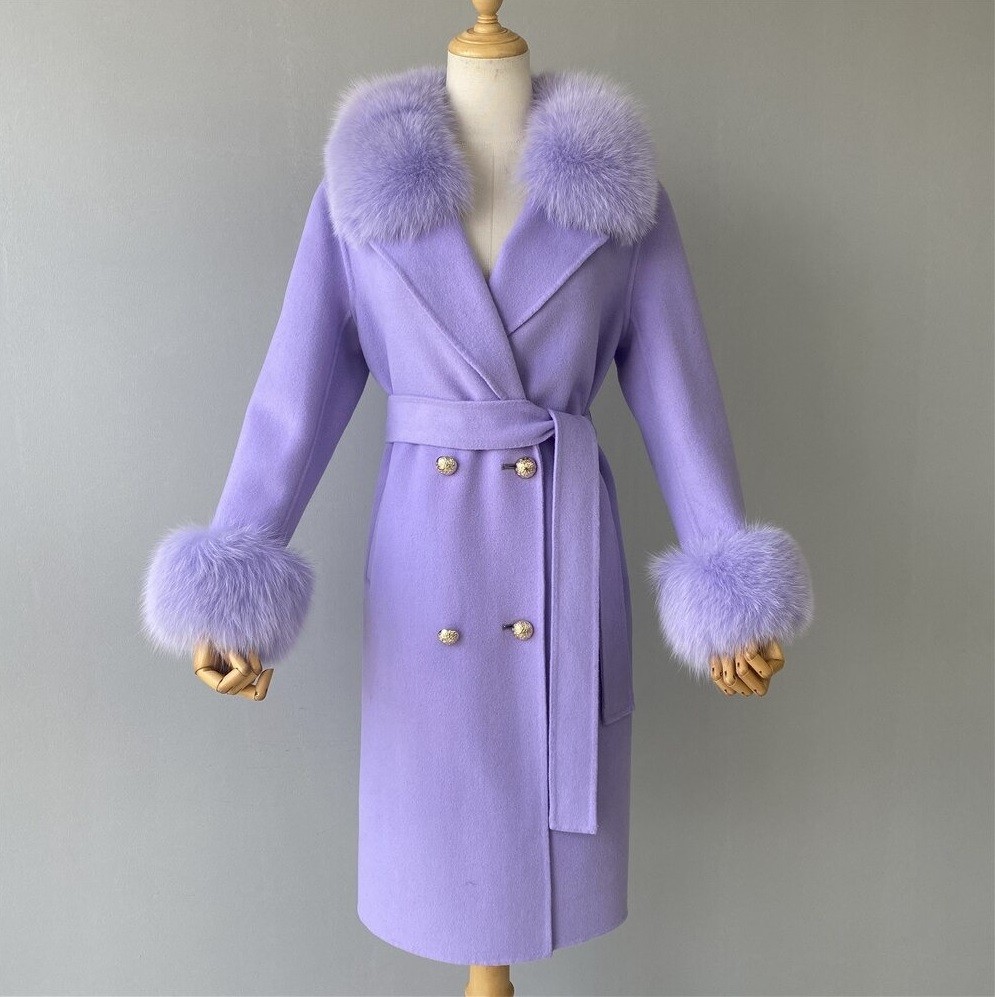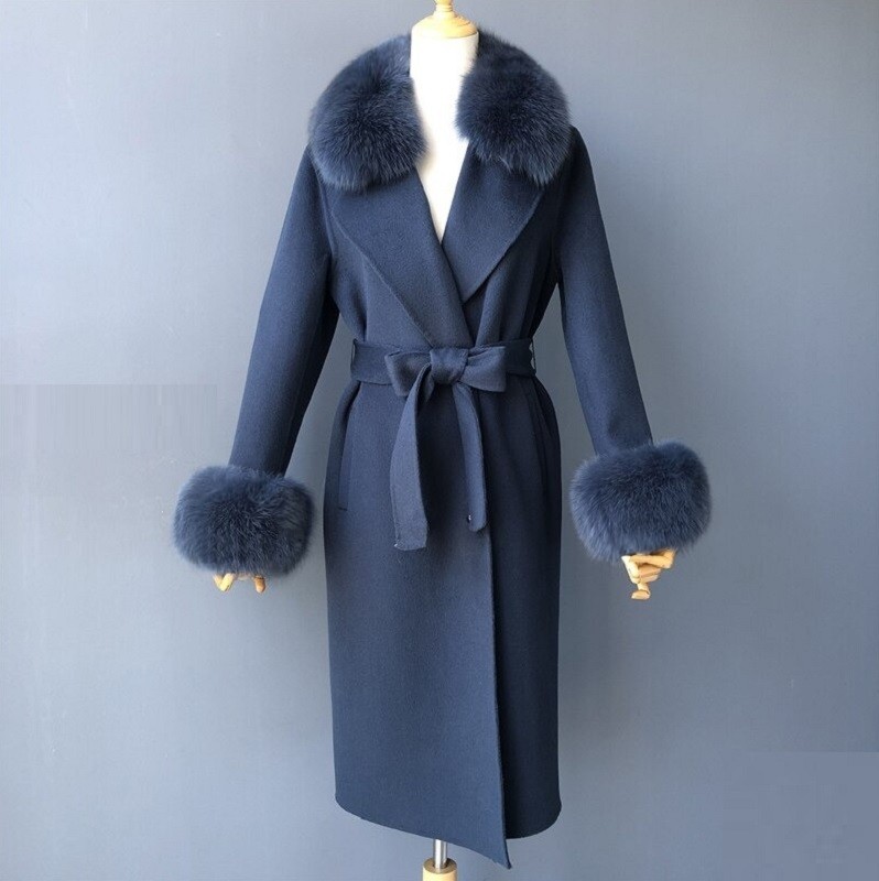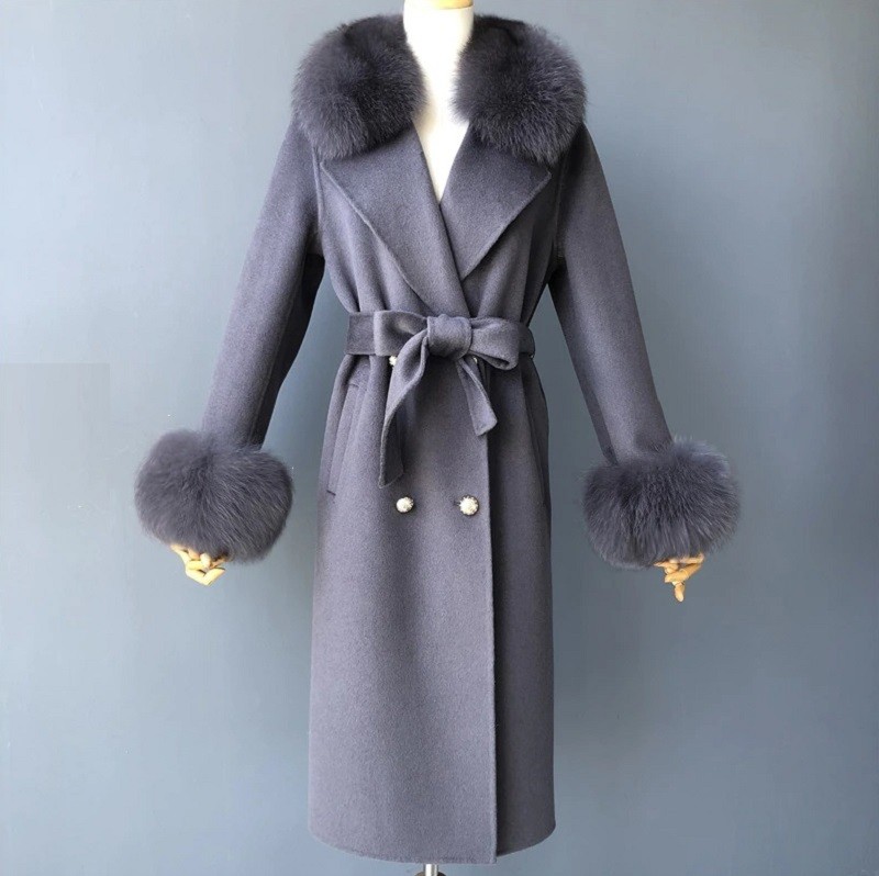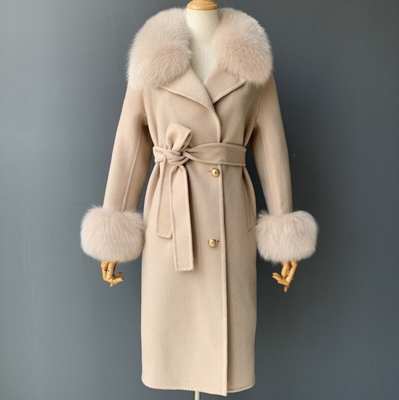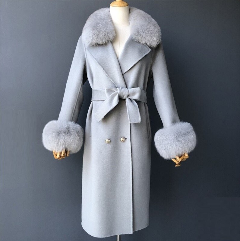 Material: lana de cachemira, piel de zorro.
