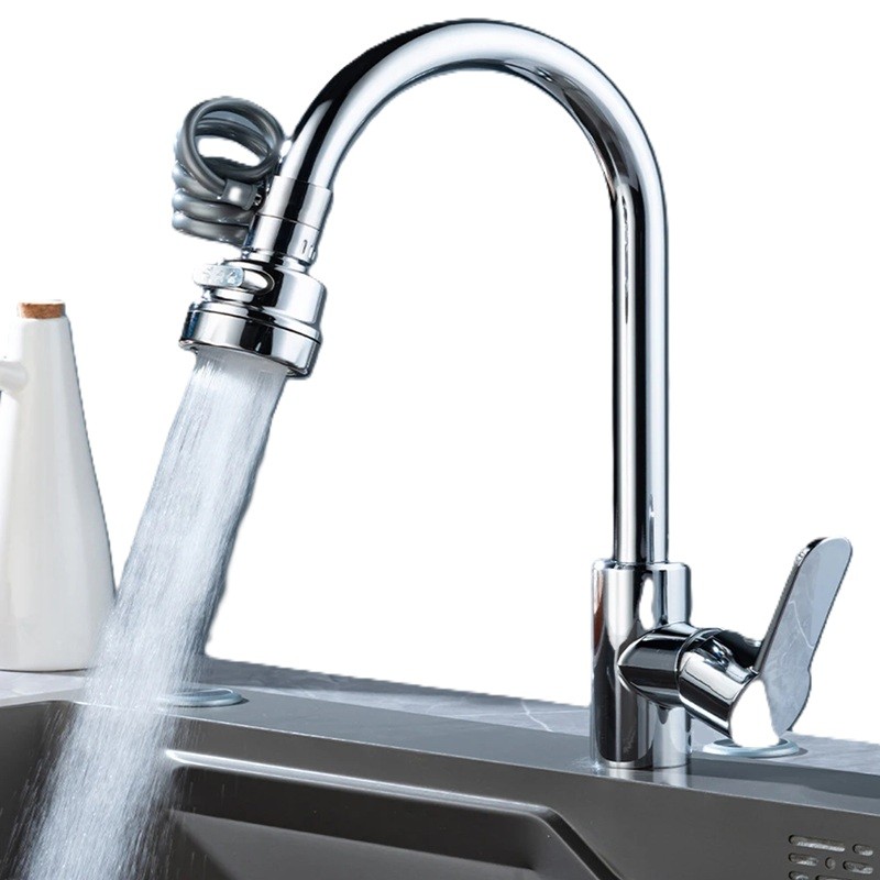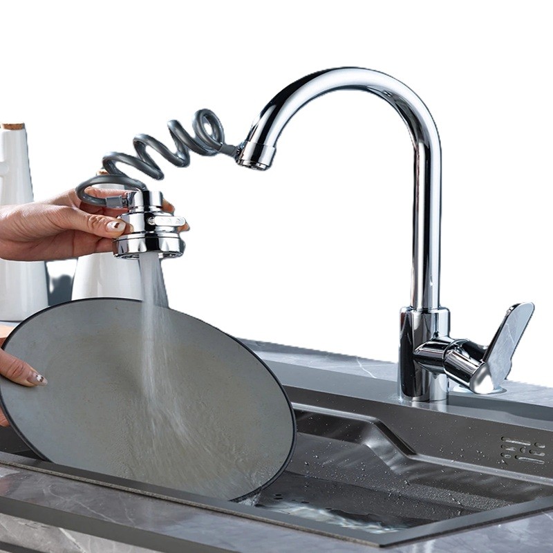 Este adaptador para grifo amplía la funcionalidad de un grifo de cocina convencional. Gracias al tubo de extensión en espiral, se puede dirigir fácilmente el agua a diferentes partes del fregadero. El cabezal de ducha giratorio permite un enjuague cómodo de utensilios o alimentos. Los tres modos de flujo de agua permiten adaptar la salida de agua según la necesidad actual. La construcción está diseñada como un accesorio universal para fregaderos de cocina.