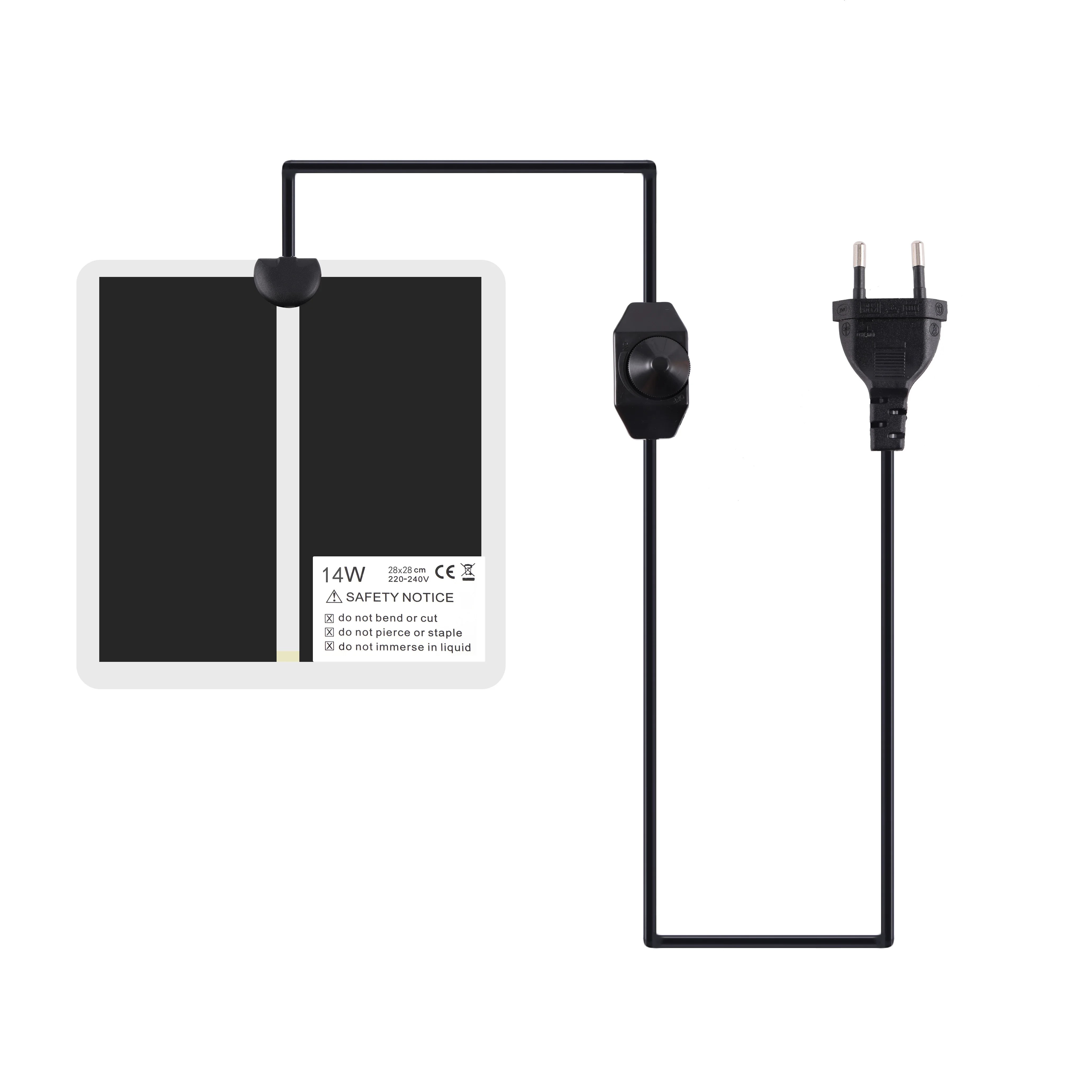 Alfombrilla calefactora para reptiles 14W 28x 28 cm alfombrillas calefactoras para animales en terrarios con regulador de temperatura ajustable