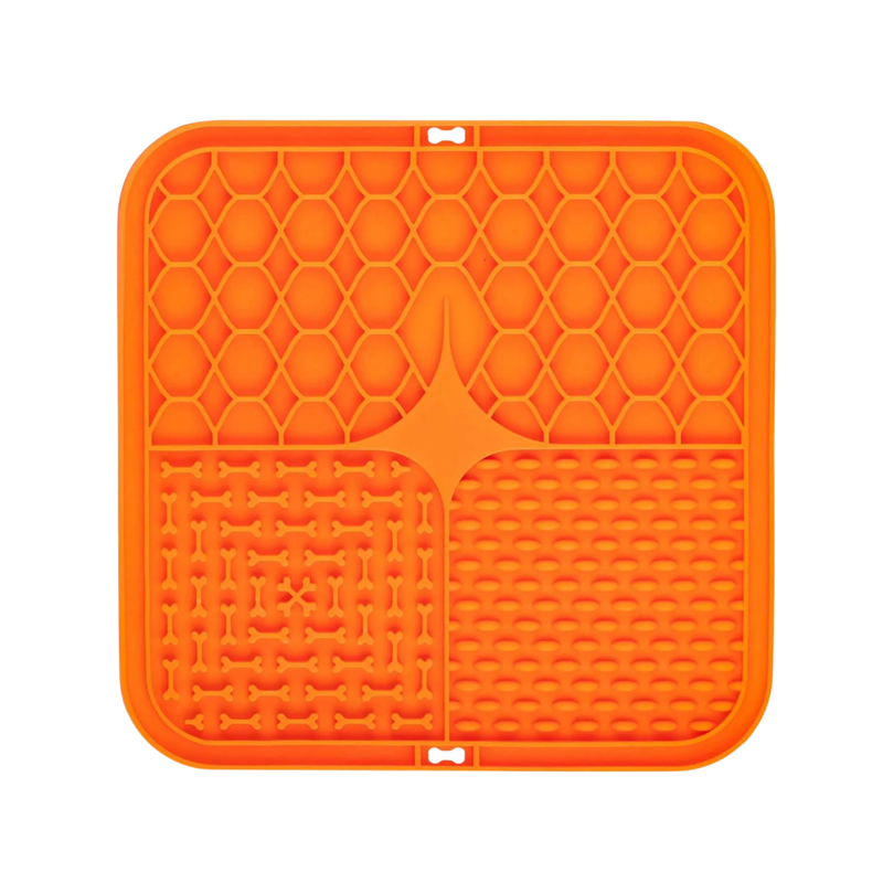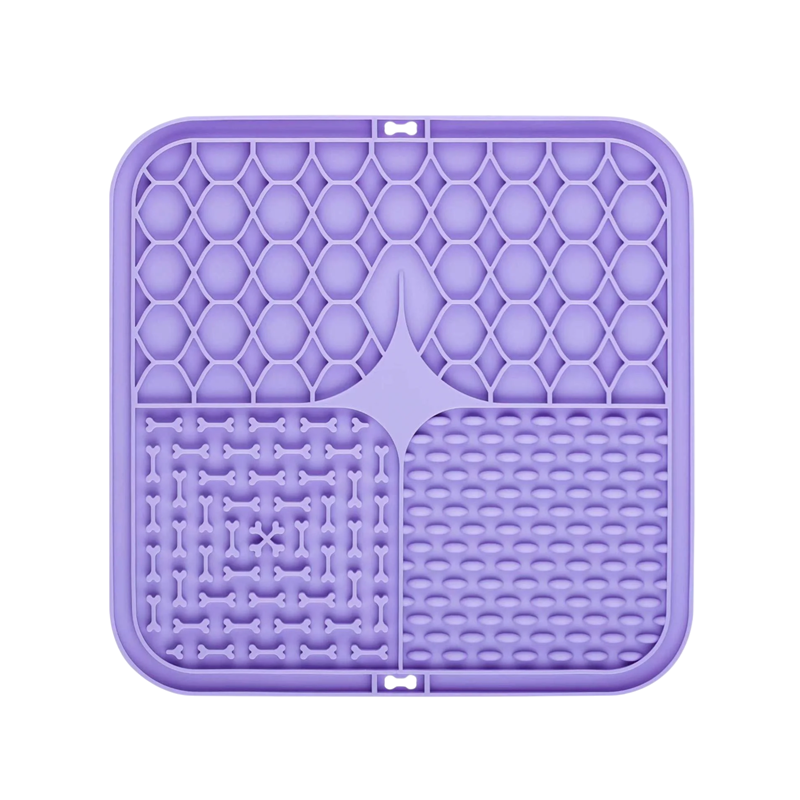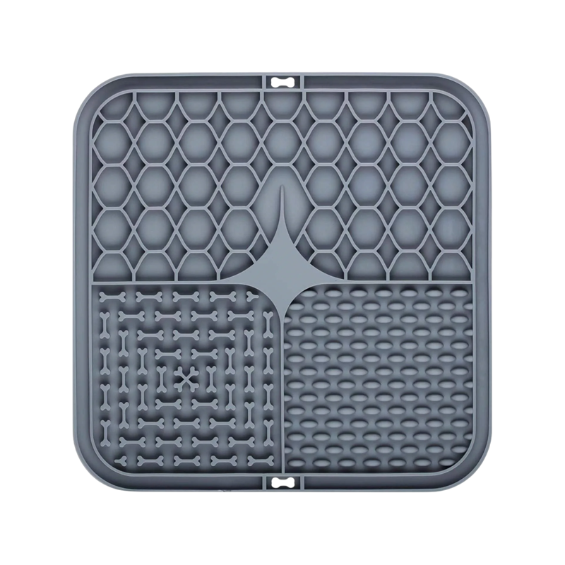 La alfombrilla de lamido para perros es un complemento práctico que ayuda a mejorar la alimentación diaria y al mismo tiempo brinda diversión y relajación a su mascota. Gracias a su diseño especial con protuberancias y surcos, obliga al perro a comer más lentamente, lo que contribuye a una digestión más saludable y previene la ingesta excesiva. Está fabricada con silicona alimentaria segura, que es suave, duradera y fácil de limpiar. Gracias a las ventosas en la parte inferior, se mantiene firmemente en el suelo o en el plato, por lo que no se desplaza durante su uso.