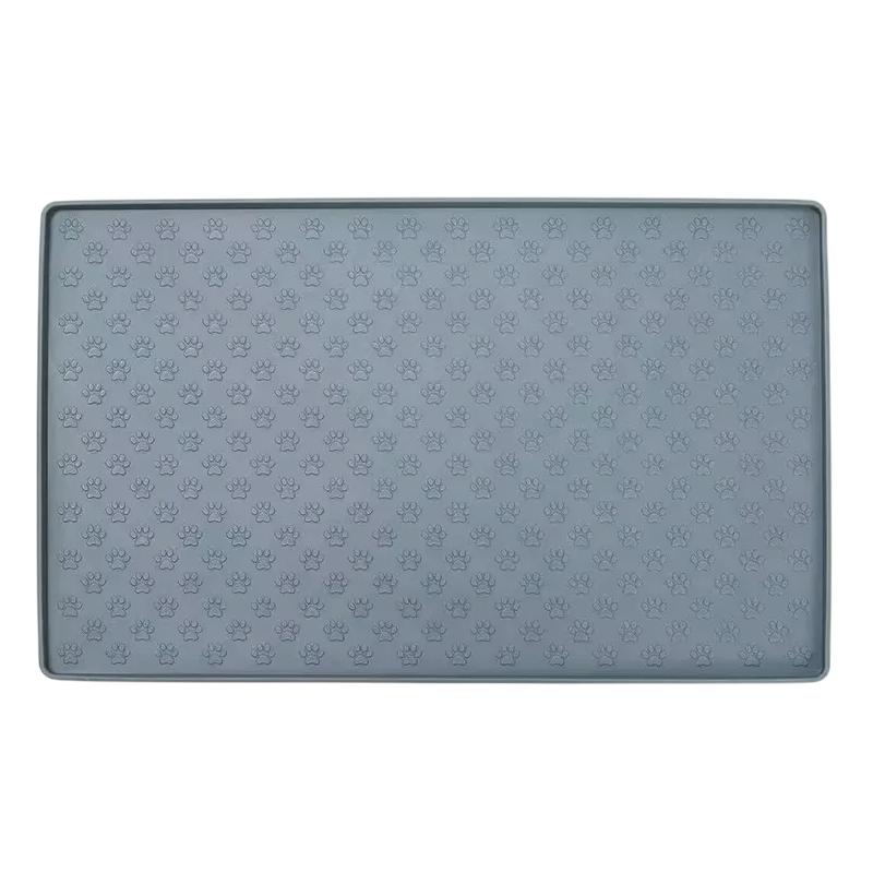 Esta alfombrilla de silicona para cuencos de perros y gatos representa la solución ideal para mantener la limpieza y el orden durante la alimentación de las mascotas. Gracias a sus generosas dimensiones de 60 x 80 cm, proporciona suficiente espacio incluso para cuencos más grandes o para más de un animal. El borde elevado evita que el agua se derrame y que el alimento se esparza fuera de la alfombrilla, protegiendo así el suelo de suciedad y humedad. La alfombrilla está fabricada con silicona de calidad, no tóxica e impermeable, que se limpia fácilmente y es amable con el suelo. Además, la superficie antideslizante asegura que los cuencos permanezcan siempre en su lugar.