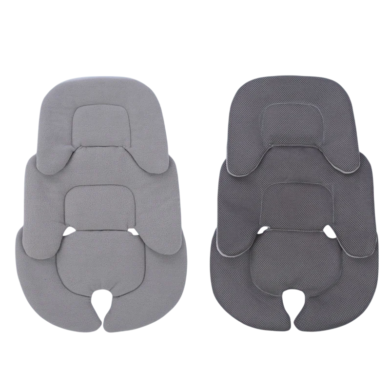 Alfombrilla universal para niños en cochecito y silla de auto con felpa y malla. Proporciona comodidad, ventilación y fácil mantenimiento. Descripción completa