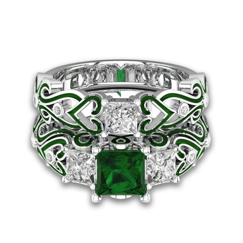 Material: metal de bisutería, circonita, imitación rubí, imitación esmeralda, imitación amatista.