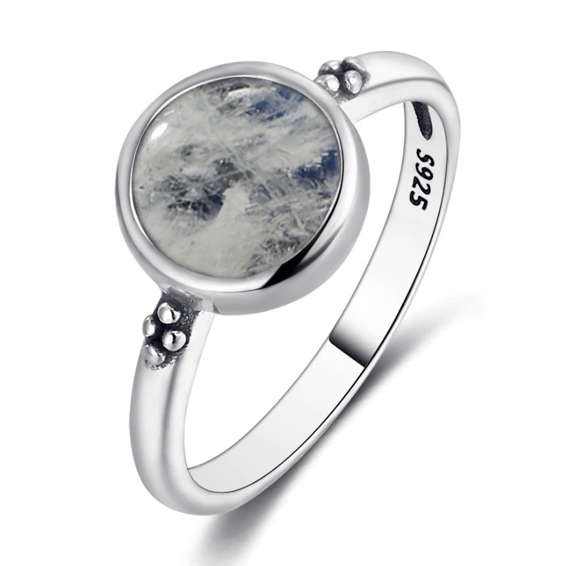 Material: metal de bisutería, imitación de piedra lunar.