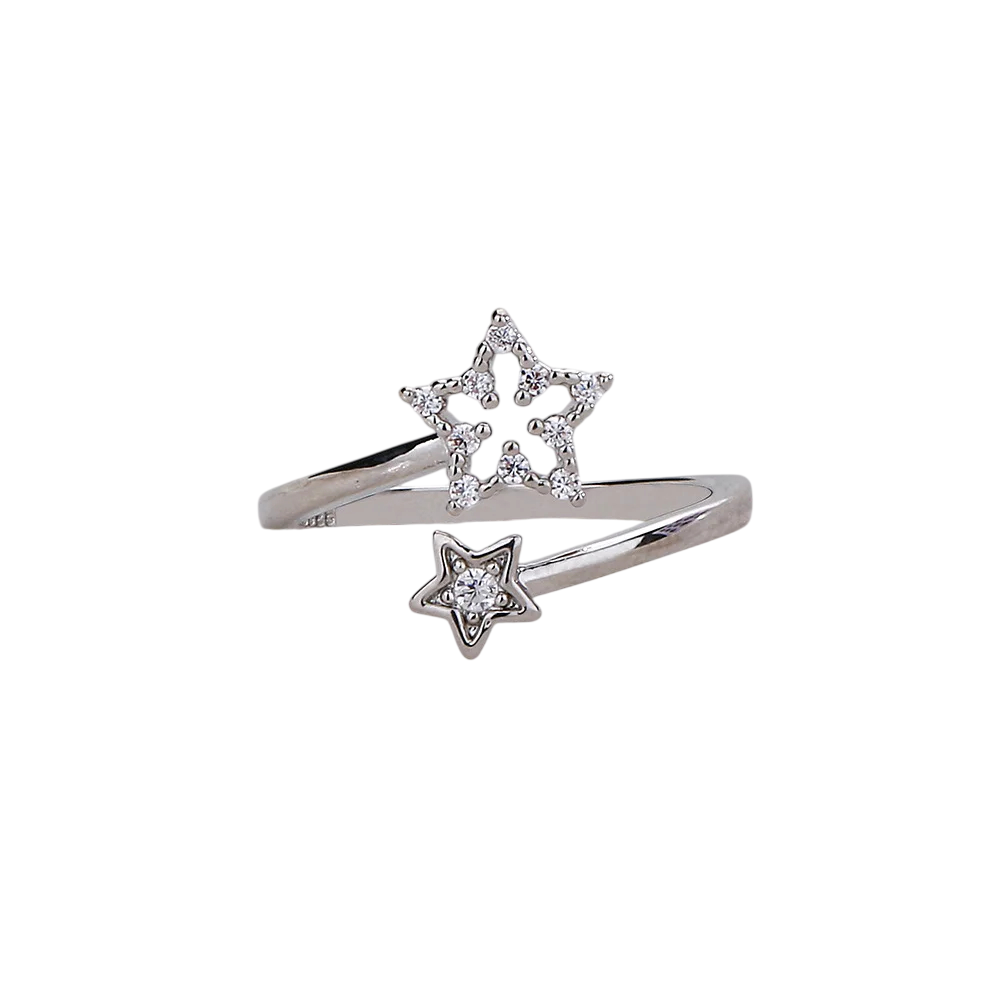 Anillo de plata para mujer de tamaño ajustable diámetro 16,5 mm Estrellas 3/5 mm Anillo abierto delgado con piedras brillantes Joya elegante