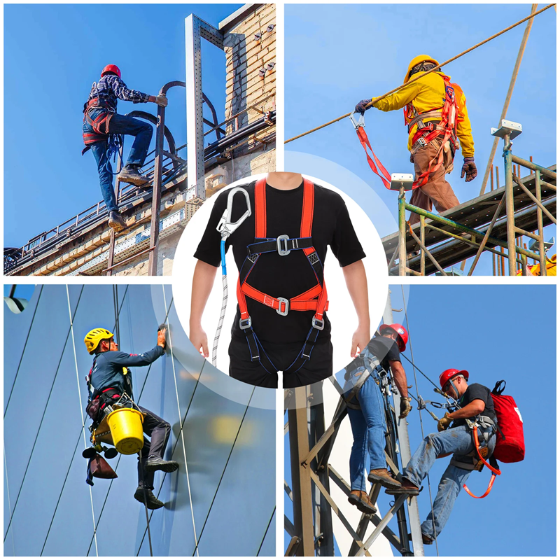 Página de inicio Página de inicio Deporte y outdoor Camping y outdoor Equipamiento táctico Arnés de seguridad para trabajo en altura con cuerda de 2 m Carabina Capacidad de 2200 kg Polipropileno Acero aleado Arnés de protección