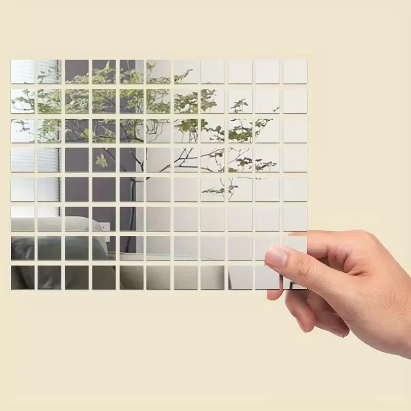 • Contenido del paquete: 100× azulejo de mosaico de espejo autoadhesivo 10 x 10 mm