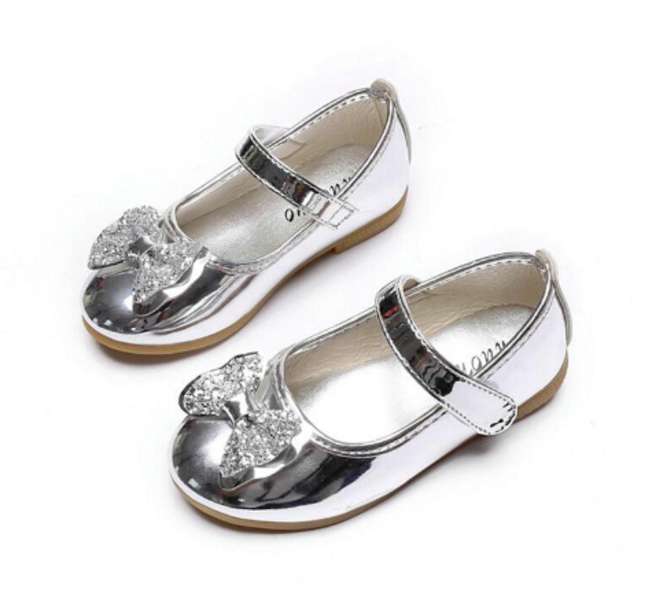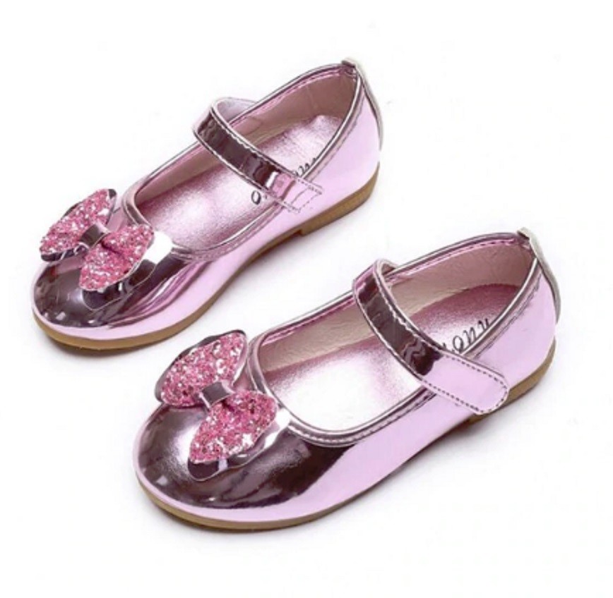 A cualquier niña le encantarán las bailarinas de charol con lazo para combinar con su vestido o falda.