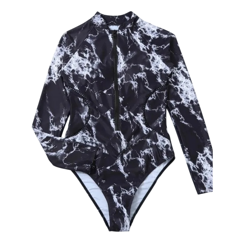 Página de inicio Página de inicio Ropa y accesorios Ropa de mujer Ropa de baño para mujer Trajes de baño para mujer Bañadores de una pieza para mujer de manga larga con escote en V y cremallera de poliéster y spandex, bañadores deportivos elásticos para mar y piscina