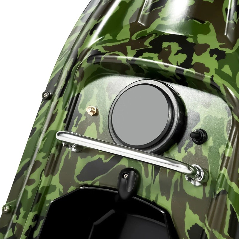 El barco está equipado con un módulo GPS integrado que permite guardar puntos de posición y facilita la orientación en la superficie del agua. La función de retorno automático a casa aumenta la seguridad en caso de pérdida de señal o batería baja. El control se realiza mediante un control remoto ergonómico con un alcance de hasta 500 metros, lo que proporciona suficiente libertad incluso al pescar a mayores distancias.