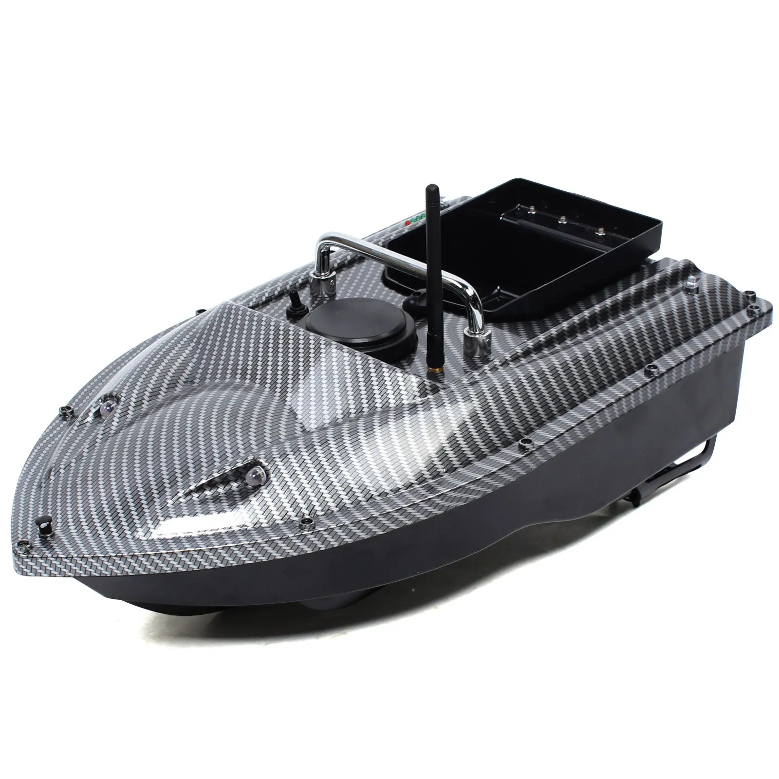 Barco de control remoto negro para cebos 54 x 27 x 21 cm control GPS Alcance 500 m luces LED nocturnas Capacidad 1,5 kg
