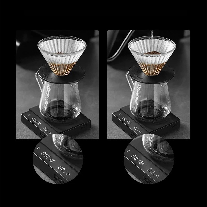Esta báscula está diseñada para proporcionar la máxima precisión y comodidad en el uso diario. Te ayudará a lograr fácilmente la proporción ideal de café y agua y a preparar la bebida exactamente como la imaginas. Gracias a su diseño compacto, se puede usar cómodamente en casa, en la oficina o en una cafetería pequeña.