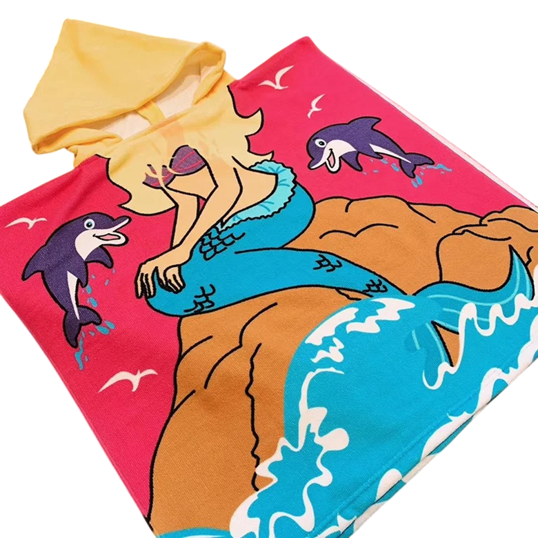 Bata de baño infantil con capucha 60 x 120 cm Para altura 80 - 130 cm Bata unisex con estampado de sirena y delfines