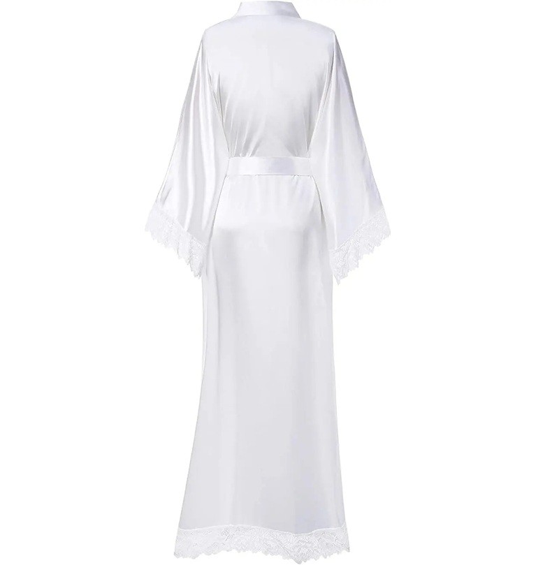 Bata ligera para mujer con detalles de encaje y un suave brillo que proporciona comodidad y elegancia para el uso diario en casa y como un accesorio estiloso. Descripción completa