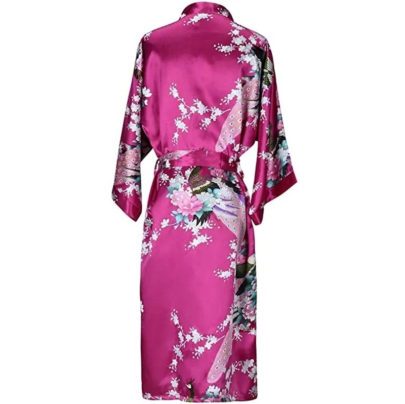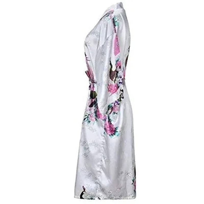 Bata de mujer con motivo floral Bata ligera y elegante de imitación seda Cinturón en la cintura con cordón Poliéster suave y efecto seda para la comodidad en casa