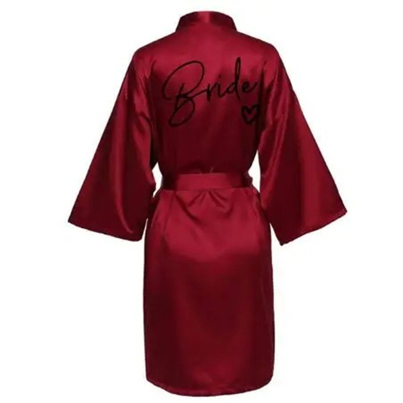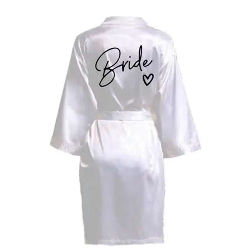 Bata de novia mujer Bata ligera y suave con el texto para la novia Cintura ajustable con cordón Satén de poliéster para preparativos de boda