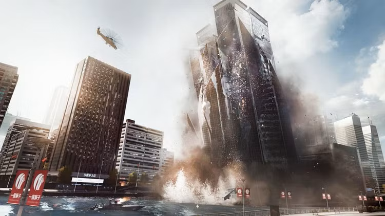 Solo en Battlefield puedes cambiar el paisaje en tiempo real con entornos interactivos que responden a cada uno de tus movimientos.
