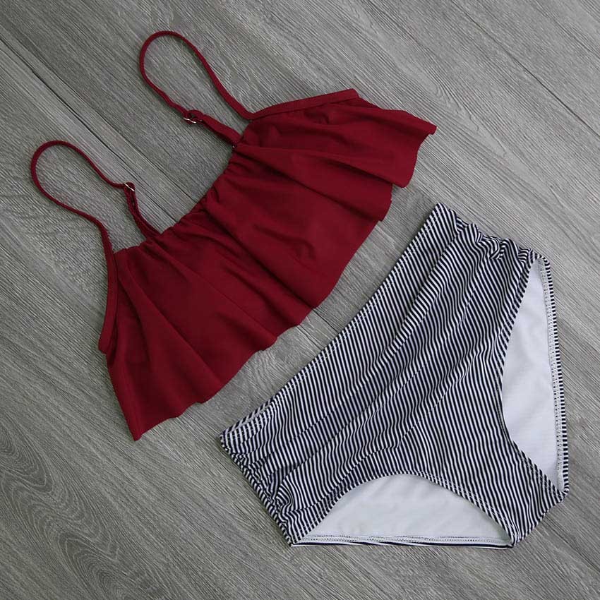 Conviértete en el centro de atención en cualquier playa con este bikini con volantes que atraerá la atención de todos.