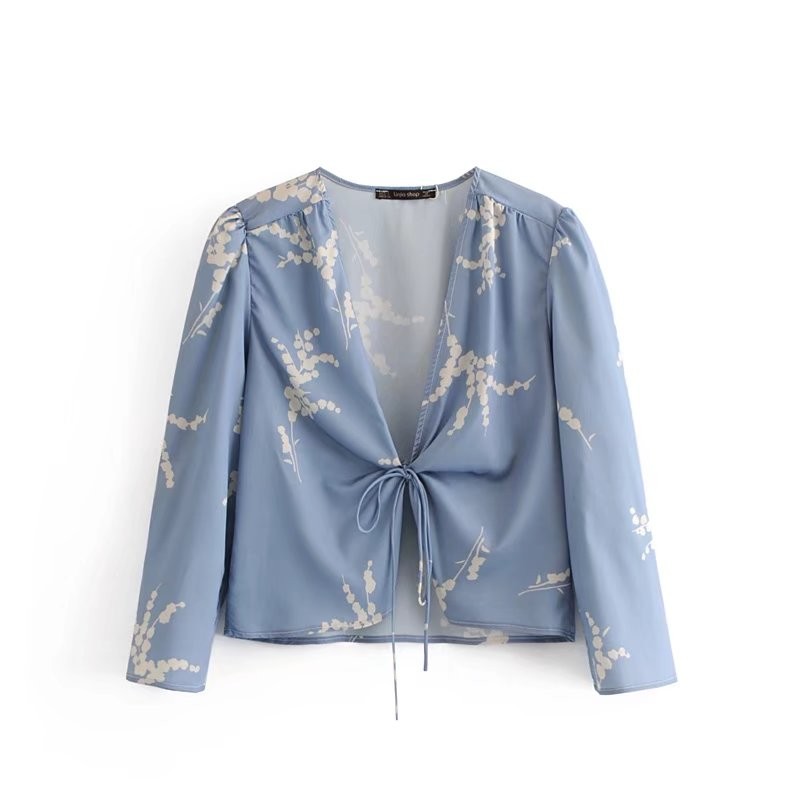 Blusa azul de mujer con lazos