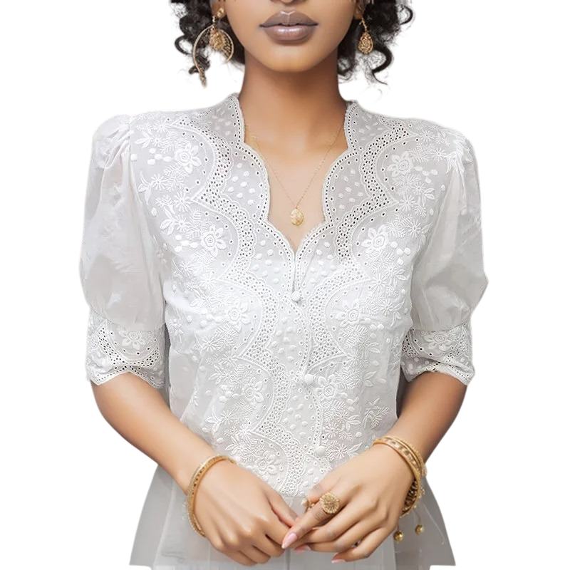 - Blusa blanca de encaje para mujer con un aspecto delicado y elegante