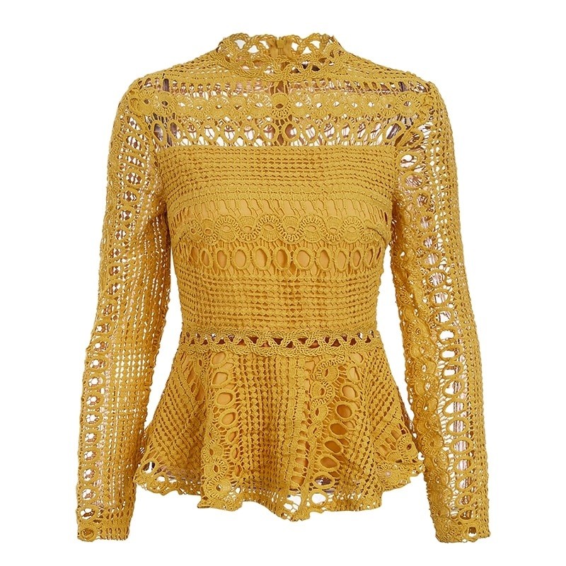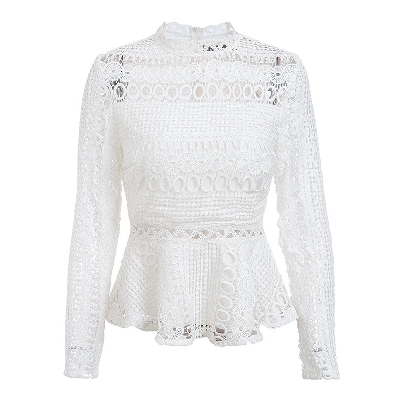 Elegante blusa de manga larga y perforaciones a lo largo de todo el largo.