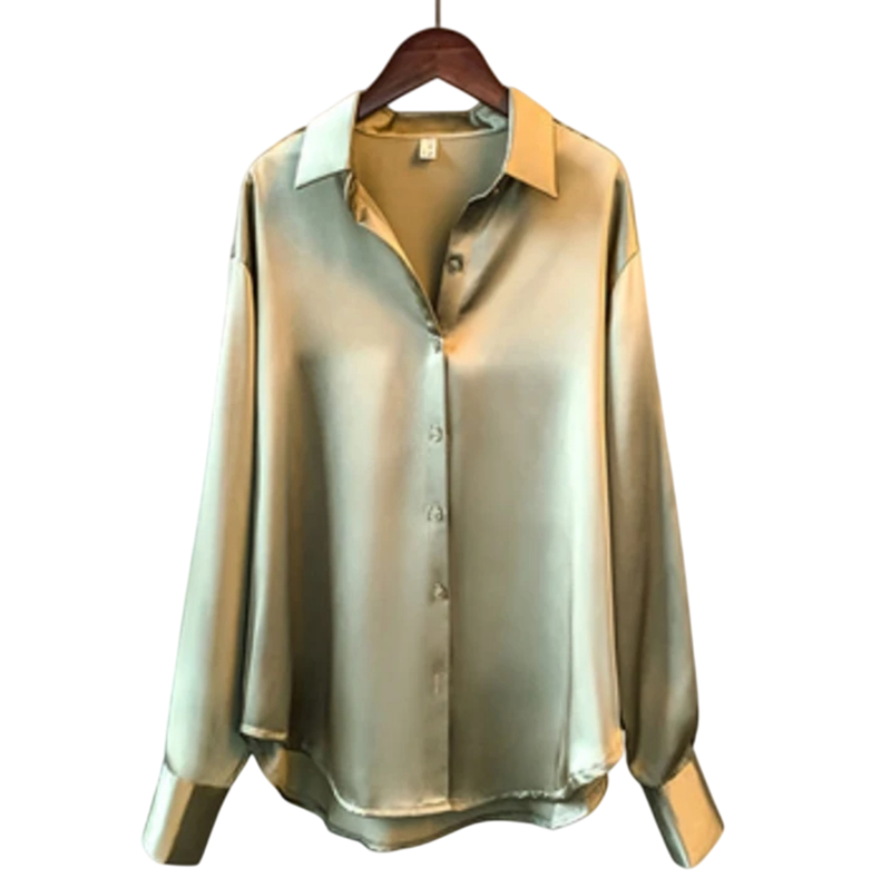 Elegante blusa de satén con mangas largas y corte holgado. Ideal para diario, la oficina y eventos sociales nocturnos. Descripción completa