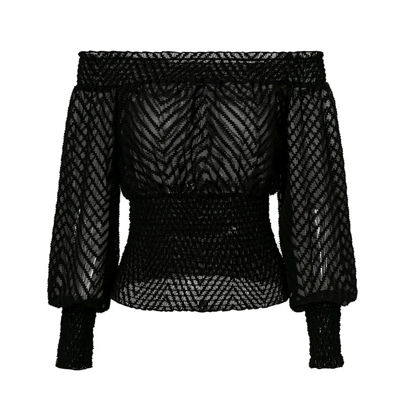 Tiene mangas largas y sueltas que comienzan debajo de los hombros.