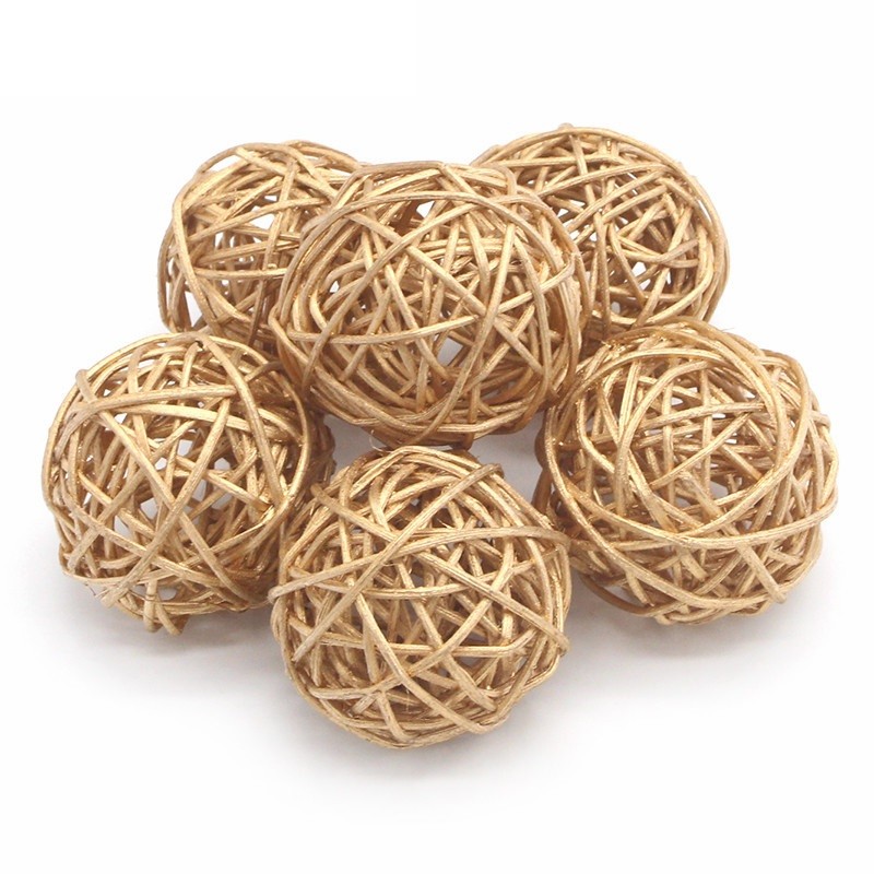 Conjunto de bolas decorativas realizadas en mimbre natural.