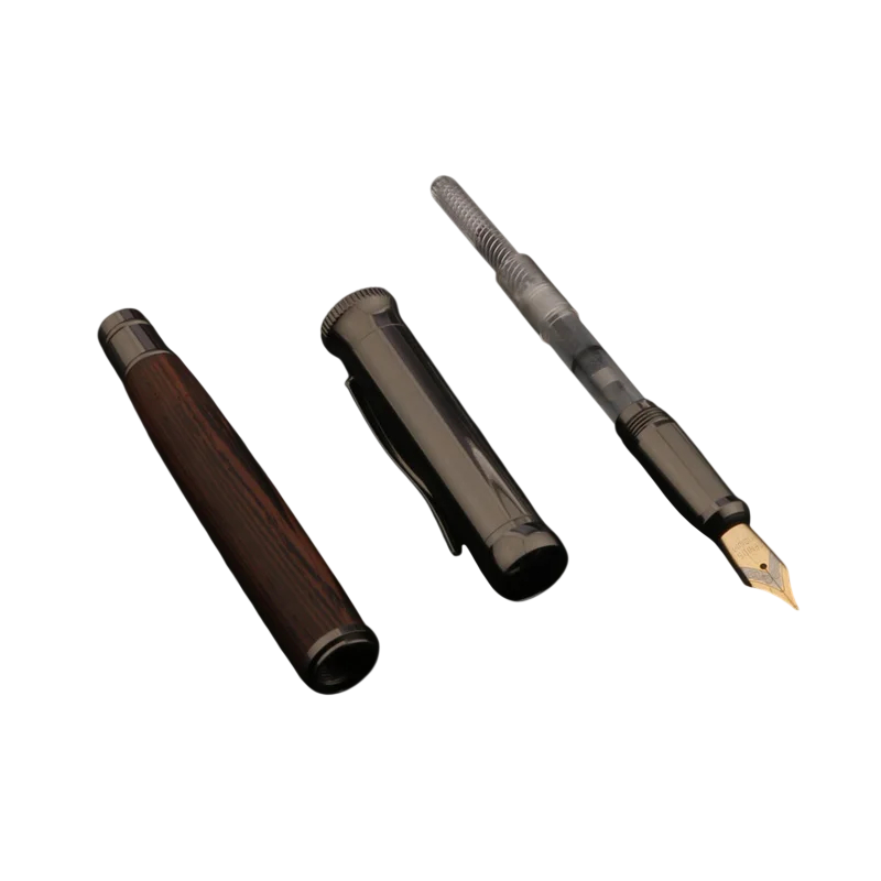 El cuerpo del bolígrafo está hecho de una combinación de madera y metal, lo que contribuye a su resistencia y durabilidad. La parte de madera con un patrón característico le da al bolígrafo un aspecto único, mientras que los elementos metálicos aseguran estabilidad y larga vida útil. El acabado de la superficie apoya un agarre cómodo durante la escritura.