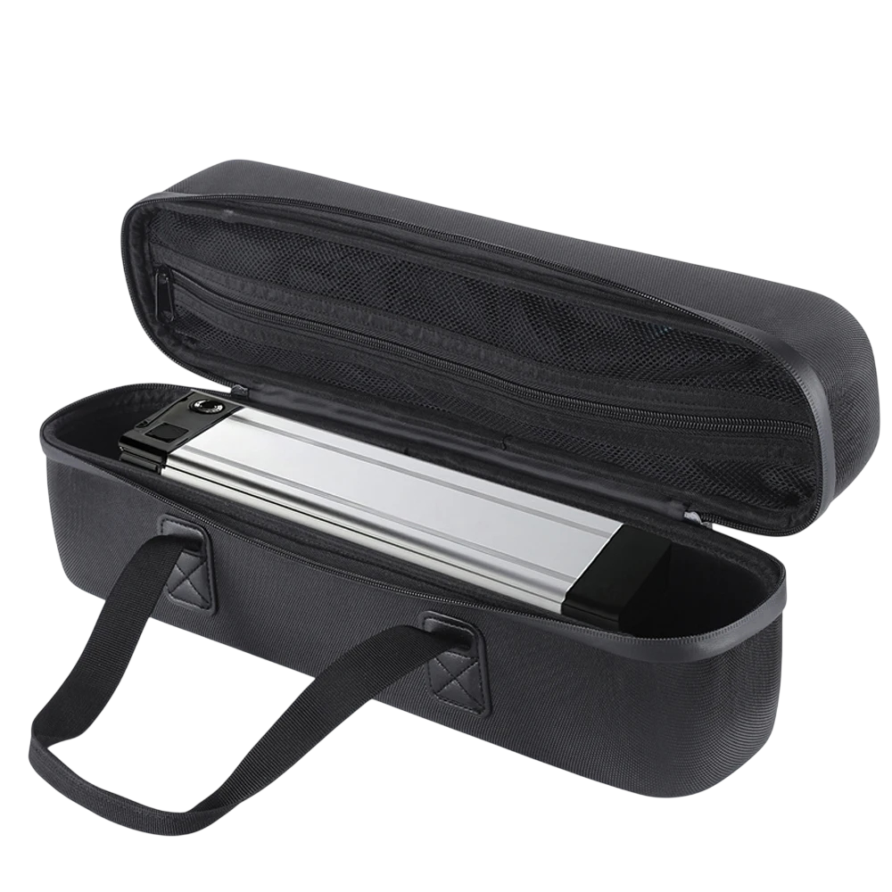 Bolsa de batería impermeable y resistente para bicicleta eléctrica hecha de materiales PU y EVA que proporciona un espacio de almacenamiento seguro y estable. Descripción completa