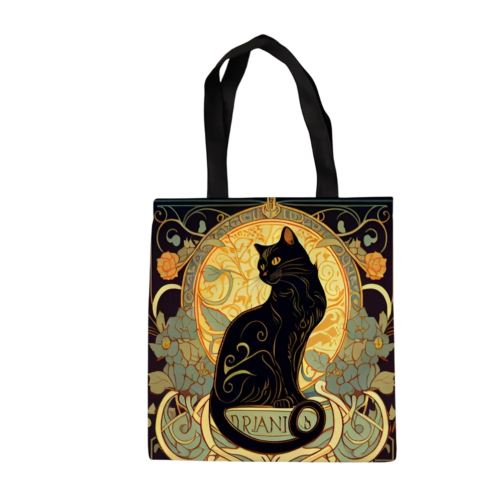 • Bolsa de lona universal con motivo de gato negro en estilo art nouveau