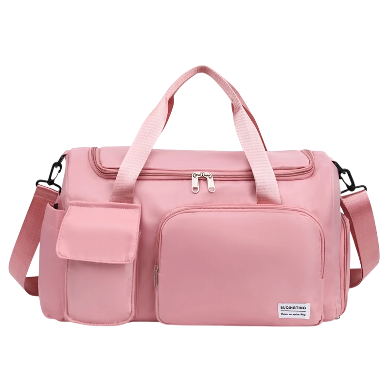 La bolsa de deporte de viaje para mujeres representa una excelente opción para cada mujer que valora el estilo y la practicidad. El bolsillo separado para zapatos es especialmente apreciado durante el deporte, cuando es necesario mantener otras cosas limpias y frescas. Gracias al resistente material Oxford, la bolsa es adecuada para el uso diario, por ejemplo, para ir al trabajo, al gimnasio o en excursiones de fin de semana. Las opciones de transporte variables con la correa y las asas aumentan la comodidad al viajar. Si buscas una bolsa versátil que cumpla con todos los requisitos de diseño, practicidad y calidad, esta bolsa de deporte de viaje es la elección clara.
