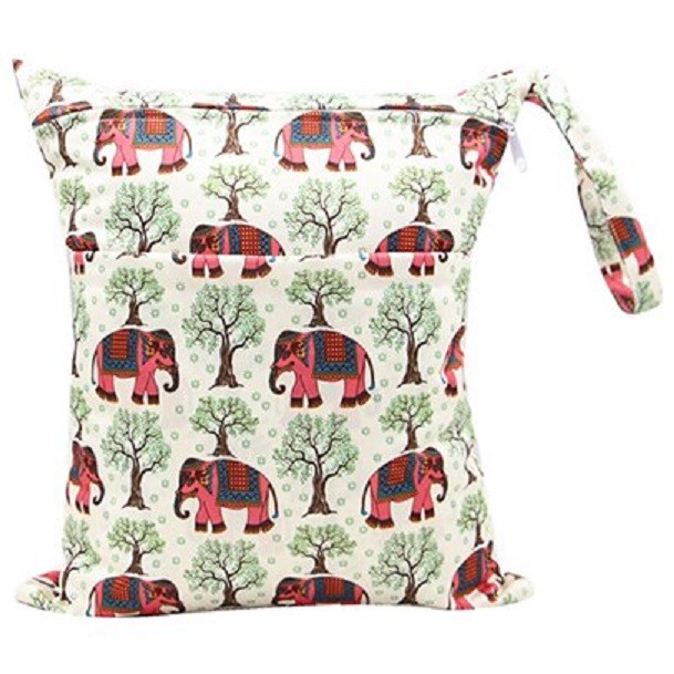Práctica bolsa impermeable para pañales usados y otros artículos húmedos.