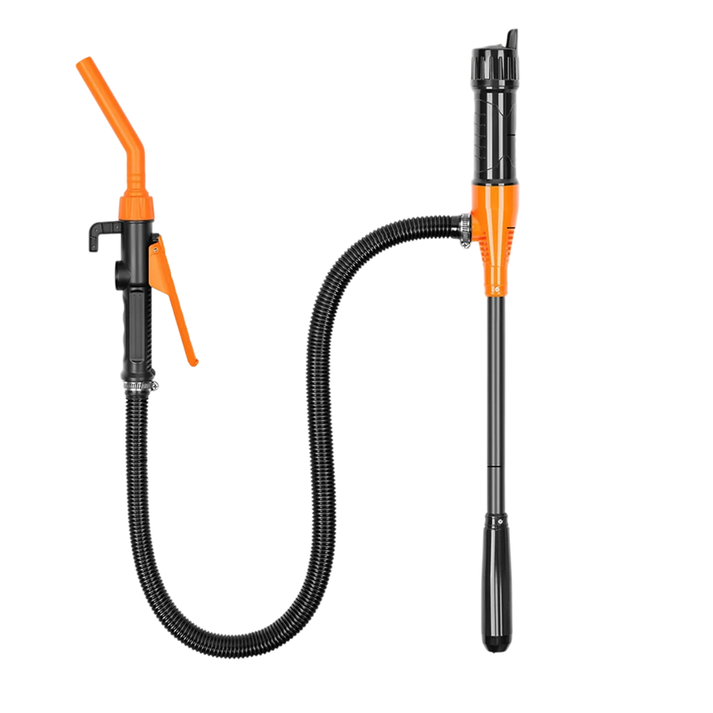 La bomba está equipada con una manguera flexible, que permite dirigir el líquido cómodamente hacia un recipiente o tanque preparado. La construcción está diseñada para su uso, por ejemplo, al trasvasar combustible en automóviles, camiones o al manipular líquidos en diversos recipientes.