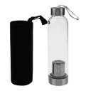 Botella con filtro fino de acero inoxidable en la parte inferior para infusiones y funda textil.