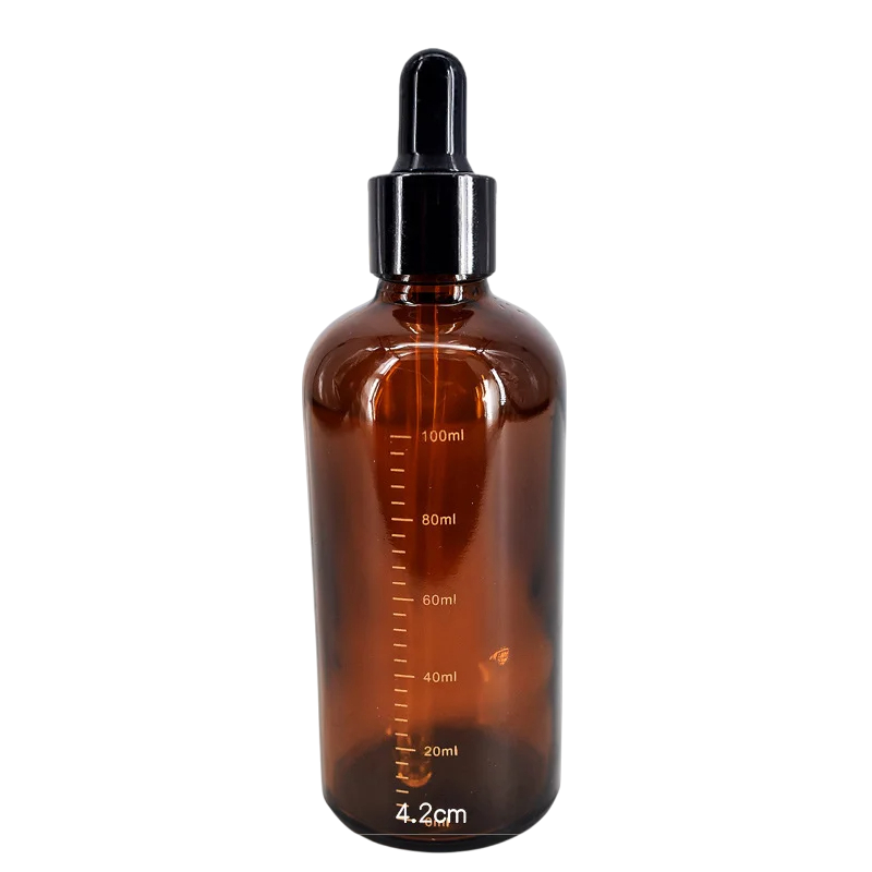 Botella de pipeta de 100 ml de vidrio ámbar con escala, ideal para aromaterapia, cosmética, gotas para los ojos o reactivos de laboratorio. Descripción completa