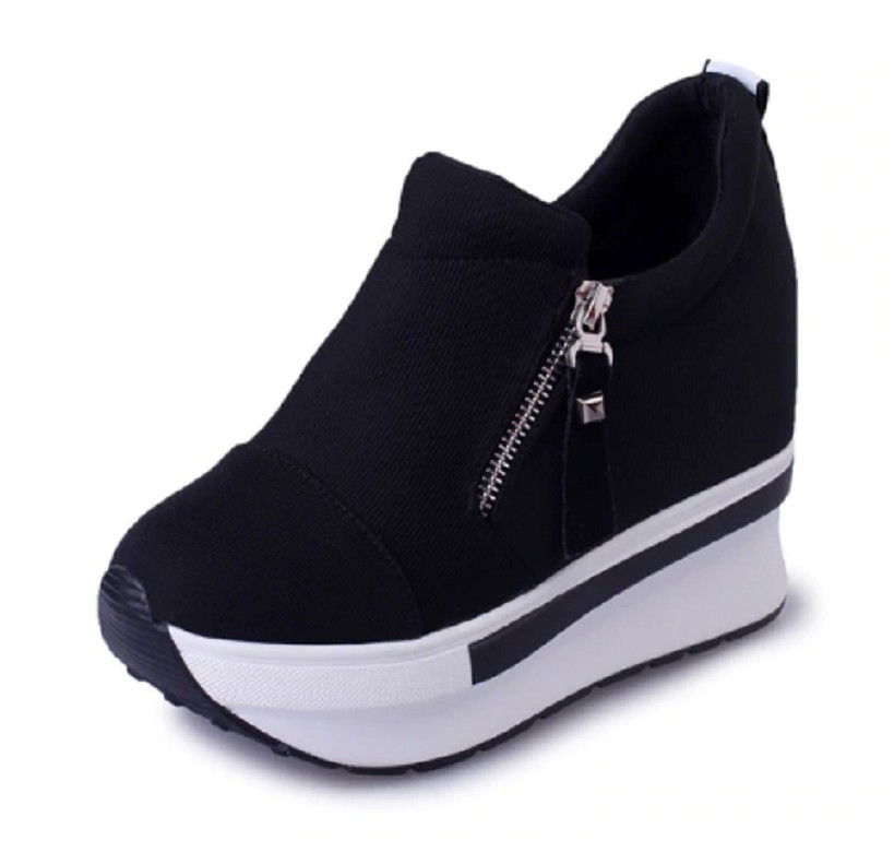 A toda mujer le encantarán estos botines con plataforma. Las zapatillas se abrochan con cremallera.