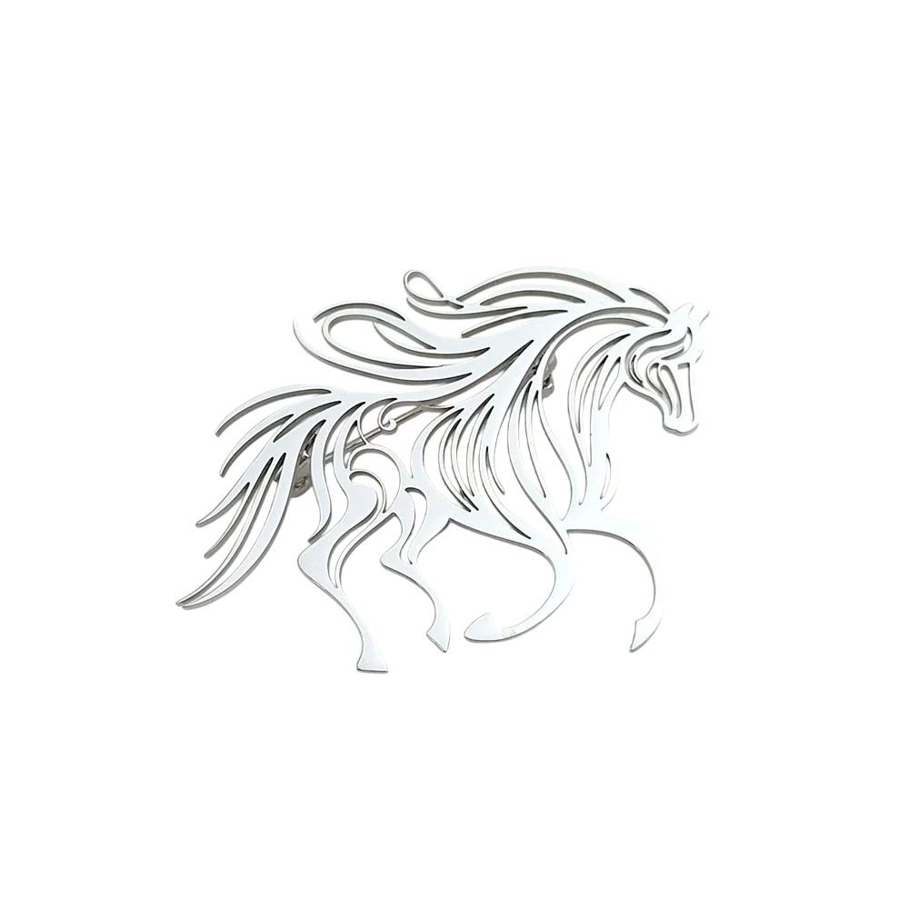 Broche de moda caballo corriendo 38 x 43,5 mm Acero inoxidable Motivo animal elegante Herrajes resistentes Accesorio estiloso para la ropa