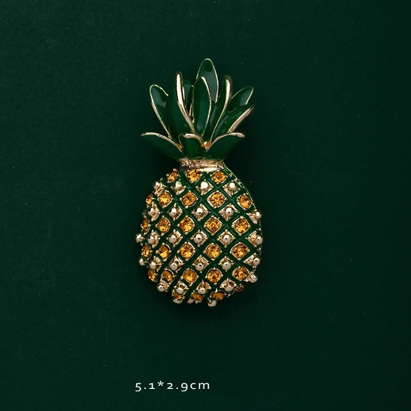 Broche de moda con comida 1–7,3 cm Motivos de frutas y snacks Palomitas piña frijoles Aleación de zinc con piedras decorativas Accesorio decorativo Este broche de moda es un complemento distintivo para aquellos que no temen a la originalidad y a los detalles juguetones. La colección está inspirada en la comida y la fruta, lo que le da un aspecto fresco, divertido y al mismo tiempo estiloso. Las piedras brillantes aportan un sutil destello al broche, que atrae la atención sin ser excesivo. Gracias a las diversas formas y motivos, el broche se puede combinar fácilmente con atuendos cotidianos o más llamativos. Es perfecto para una chaqueta, abrigo, bufanda, mochila o bolso y le da a cada look un carácter único.
