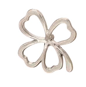 Delicada broche de metal en forma de trébol como símbolo de suerte, adecuada para uso diario y social, discreta y fácil de combinar. Descripción completa