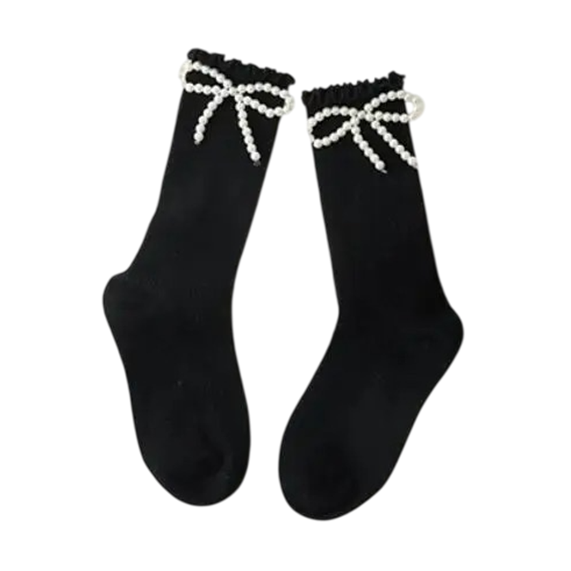 Calcetines de niña Calcetines de un solo color con lazos de perlas Calcetines suaves de algodón para niños Calcetines elegantes para niñas