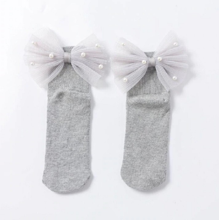 Calcetines de niña con lazo grande y perlas